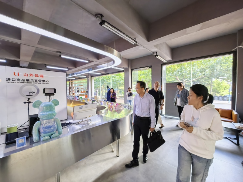 活动期间,在山东外国语职业技术大学外语学院院长刘伟的陪同下,我校外国语学院一行首先参观了山外智慧外语训练与发展中心、直播营销实训中心、同声传译实训室、进口商品展示直营中心。接着在交流环节,刘伟院长和张志祥院长分别介绍了各自学院的发展历程、办学定位与整体情况。双方重点探讨了职业本科外语专业省级平台申报、博士人才引进、外语专业职业方向设置及人才培养模式等内容。最后,梁银辉书记就访企拓岗、职教本科就业岗位等议题,与对方进行了深入交流。