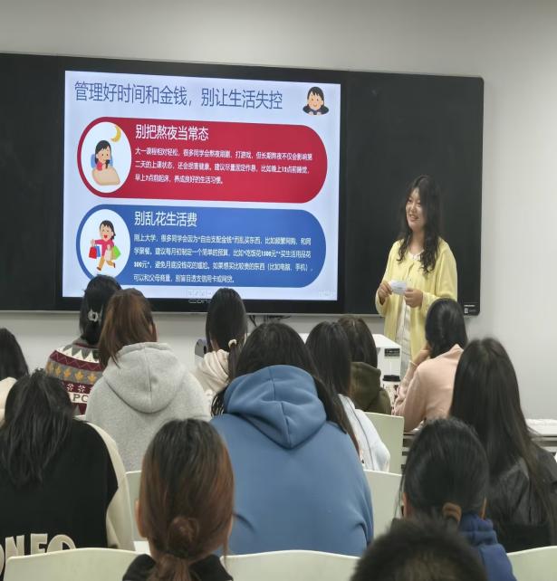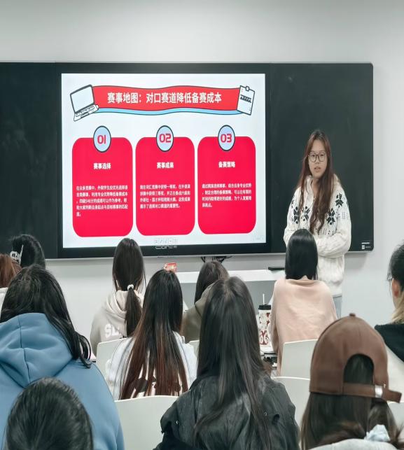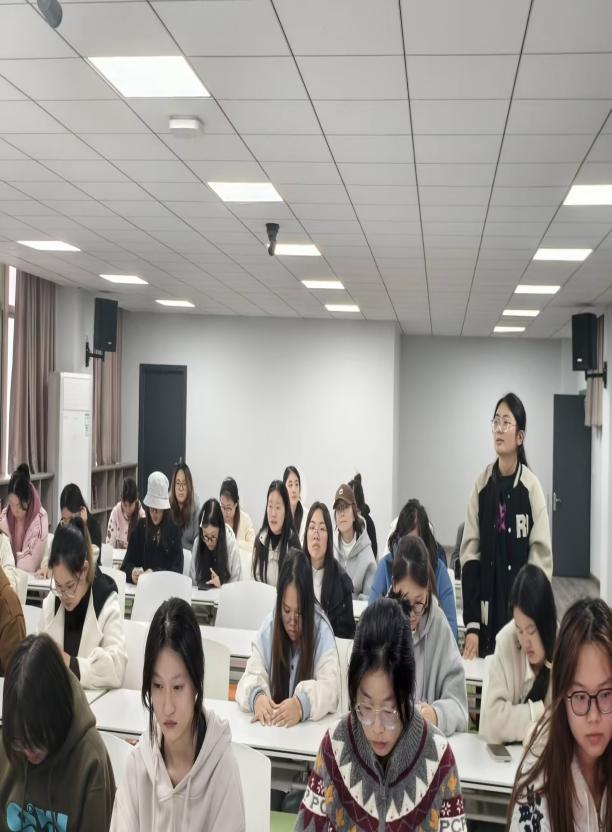 随后,外国语学院两位国家奖学金获得者杜佳蔚、张利雷分享了她们的学习生活经验,让“十五五”规划与青年成长的连接更具实践温度。她们以自身经历,清晰地勾勒出一条将国家蓝图转化为个人行动的有效路径,为在座同学提供了“规划如何照进现实”的生动答案。一位同学在听后感慨:“原来将我自己的英语专业学透、学好,就是在为‘十五五’的实现贡献力量”!