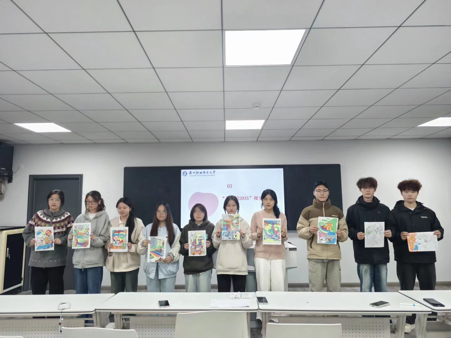 各小组围绕“科技强国”“美丽乡村”“开放中国”“生态宜居”等“十五五”重点发展方向展开创作。学生以手绘简笔画,勾勒出未来图景。最终,一幅幅作品展现了“十五五青春奋进图”,成为青年对未来五年的深情告白与行动承诺。