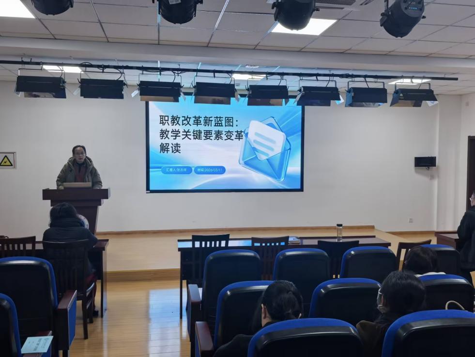 为深入贯彻落实教育部关于深化职业教育教学关键要素改革文件精神,推动职业教育产教融合高质量发展,2026年3月11日下午,外国语学院在笃行楼C204举办《职教改革新蓝图:教学关键要素变革解读》专题会议。